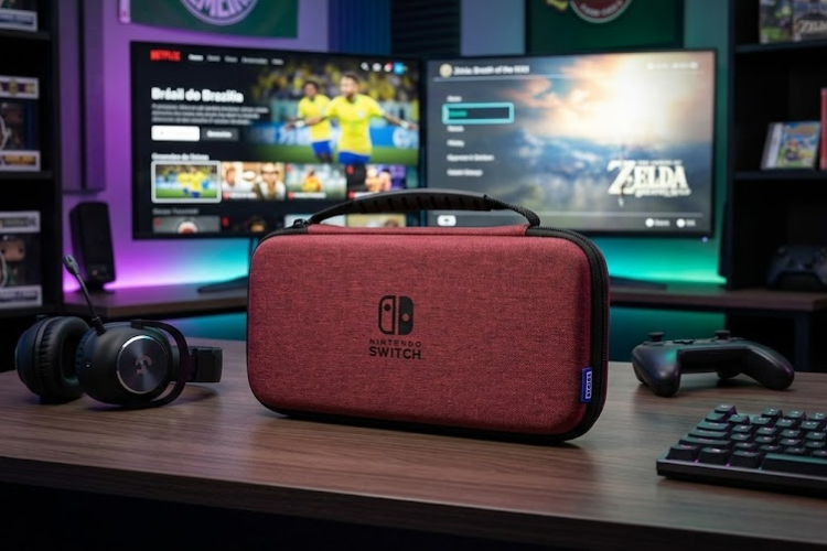 - Estojo de transporte compacto para Nintendo Switch (modelo OLED) e Nintendo Switch