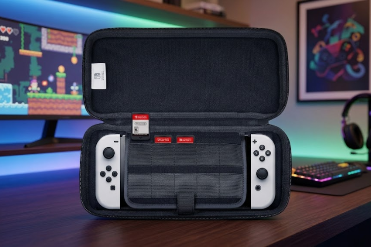 - Comporta 10 cartuchos de jogos do Nintendo Switch e acessórios.