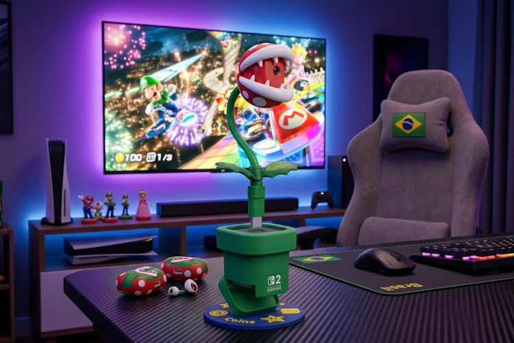A adorável e feroz Câmera Planta Piranha é perfeita para capturar seus momentos favoritos jogando com amigos e família no Nintendo Switch™ 2. Com design divertido e totalmente funcional, ela oferece bate-papo por vídeo ao vivo com praticidade, versatilidade e privacidade.