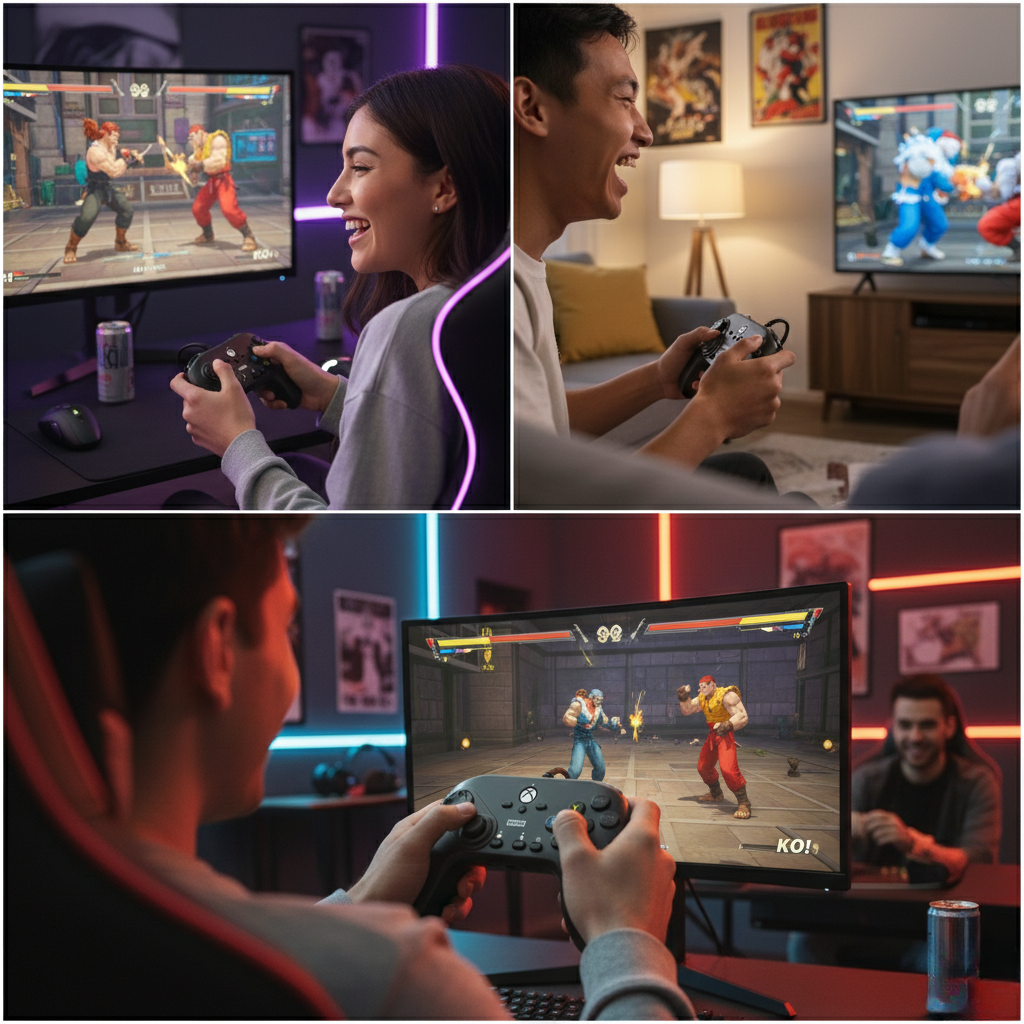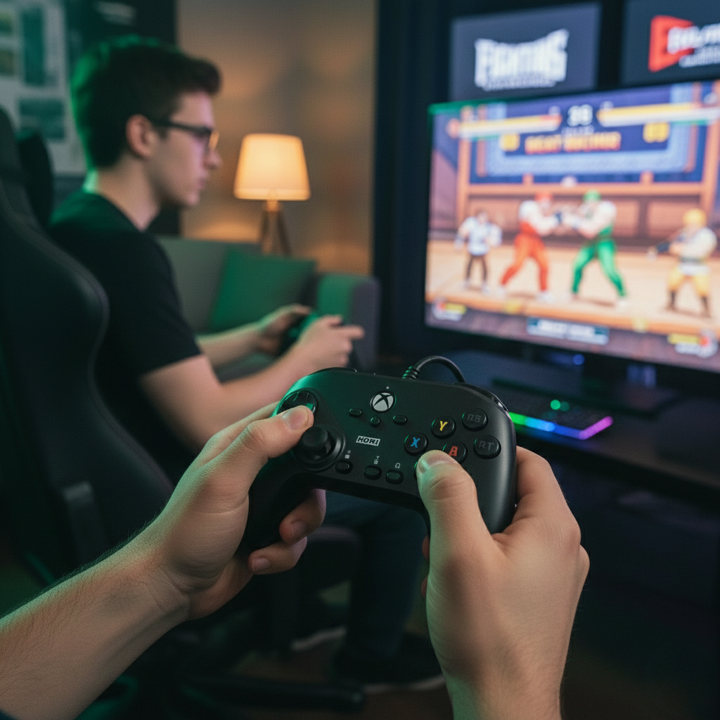 • Layout frontal de 6 botões otimizado para jogos de luta