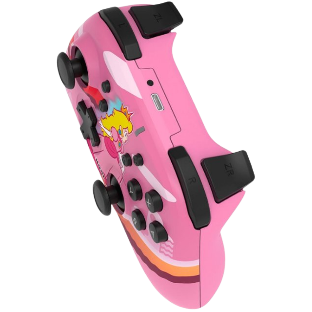 O Controle Sem Fio HORIPAD Princesa Peach para Nintendo Switch™ 1 e 2 combina elegância e desempenho em cada detalhe. Com conexão estável, botões responsivos e design ergonômico, ele oferece conforto e precisão para você brilhar em qualquer partida.