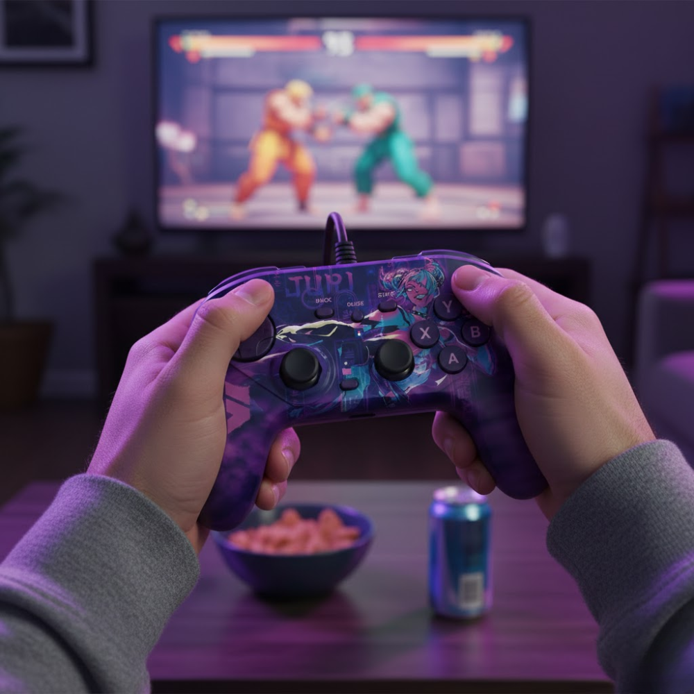 Oficialmente licenciado pela Capcom, o Fighting Commander OCTA Juri Edition é a escolha ideal para quem quer elevar o nível competitivo e dominar o ringue com estilo.
