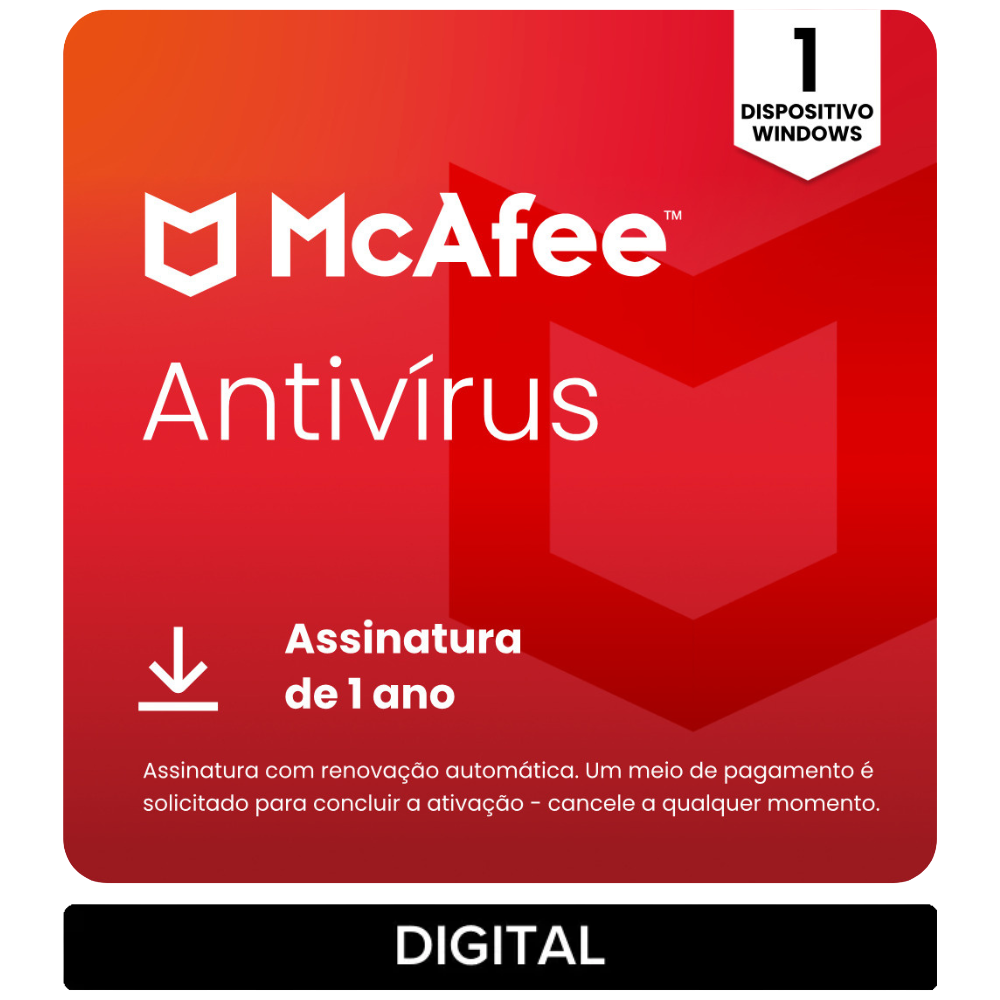 • O McAfee AntiVirus é segurança essencial para seu PC, solução simples e abrangente que protege você online